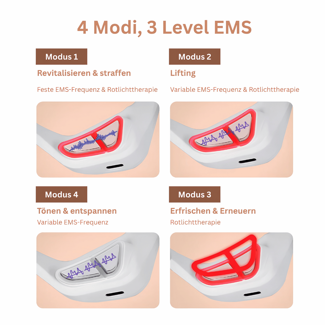 • EMS- und Rotlicht-Technologie für optimale Mikrozirkulation und effektive Hautregeneration