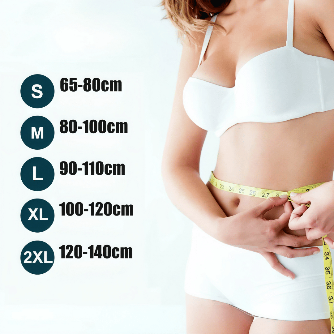 Die Revital Rückenstütze ist in fünf verschiedenen Größen von S bis XXL erhältlich, jeweils optimal auf deinen individuellen Taillenumfang zugeschnitten. Bitte miss unbedingt auf Bauchnabelhöhe, um die perfekte Passform und maximale Wirkung zu erzielen.