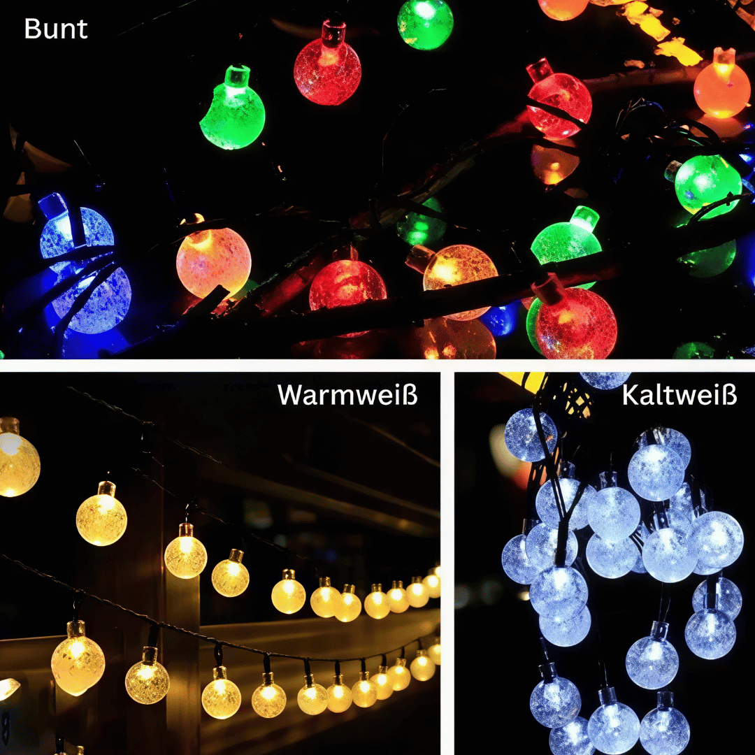 Solar Lichterkette Outdoor – Kristall LED Lichter mit 8 Modi, wasserdicht für Garten, Terrasse & Balkon